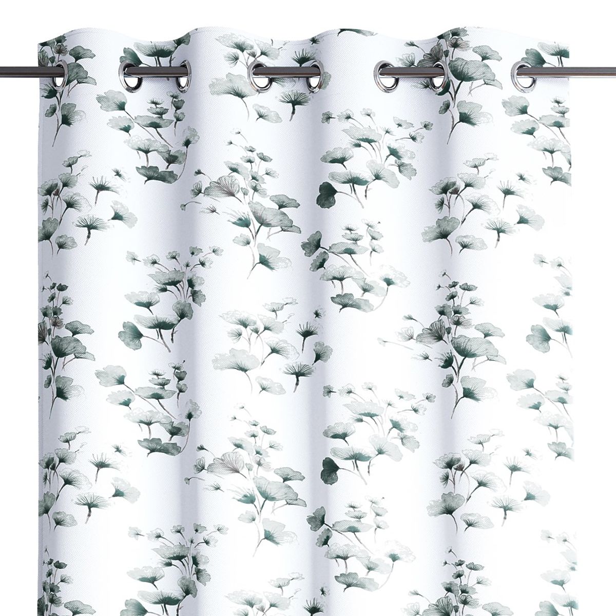 White blackout curtain with plant motif and silver eyelets, 140x250 cm. .. more