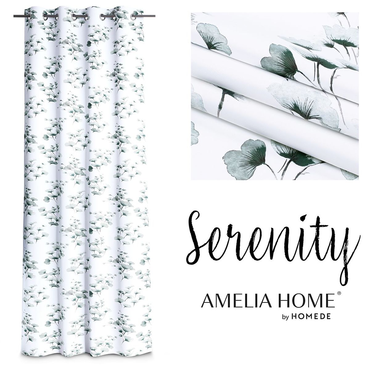 Lukahome.eu » Curtains a curtains / Curtains / SERENITY Curtain White Color Printed Plant Motif Classic Style Silver Metal Eyelets
