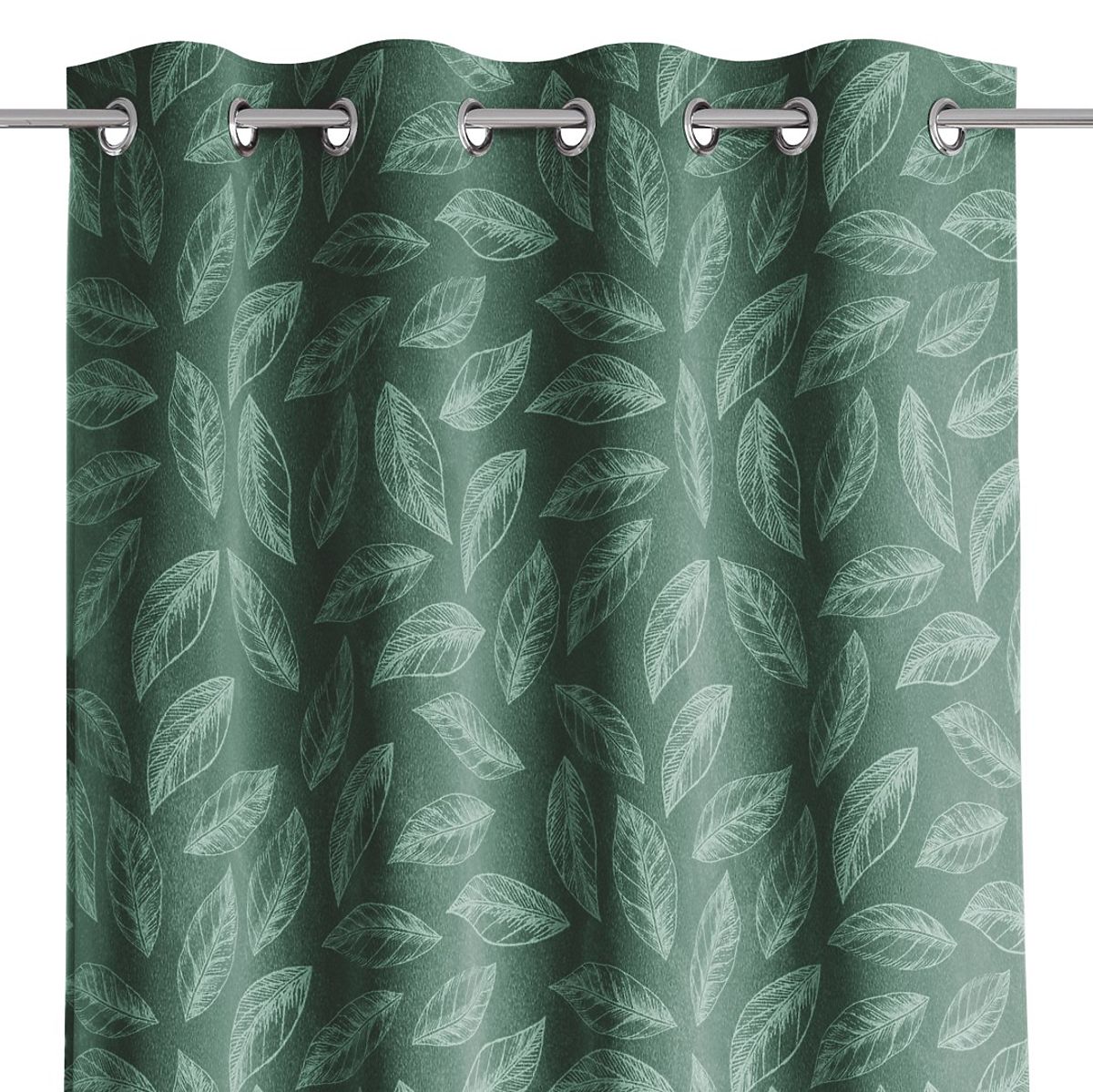 Lukahome.eu » Curtains a curtains / Curtains / CALM Curtain Bottle Green Color Printed Plant Motif Classic Style Silver Metal Rings