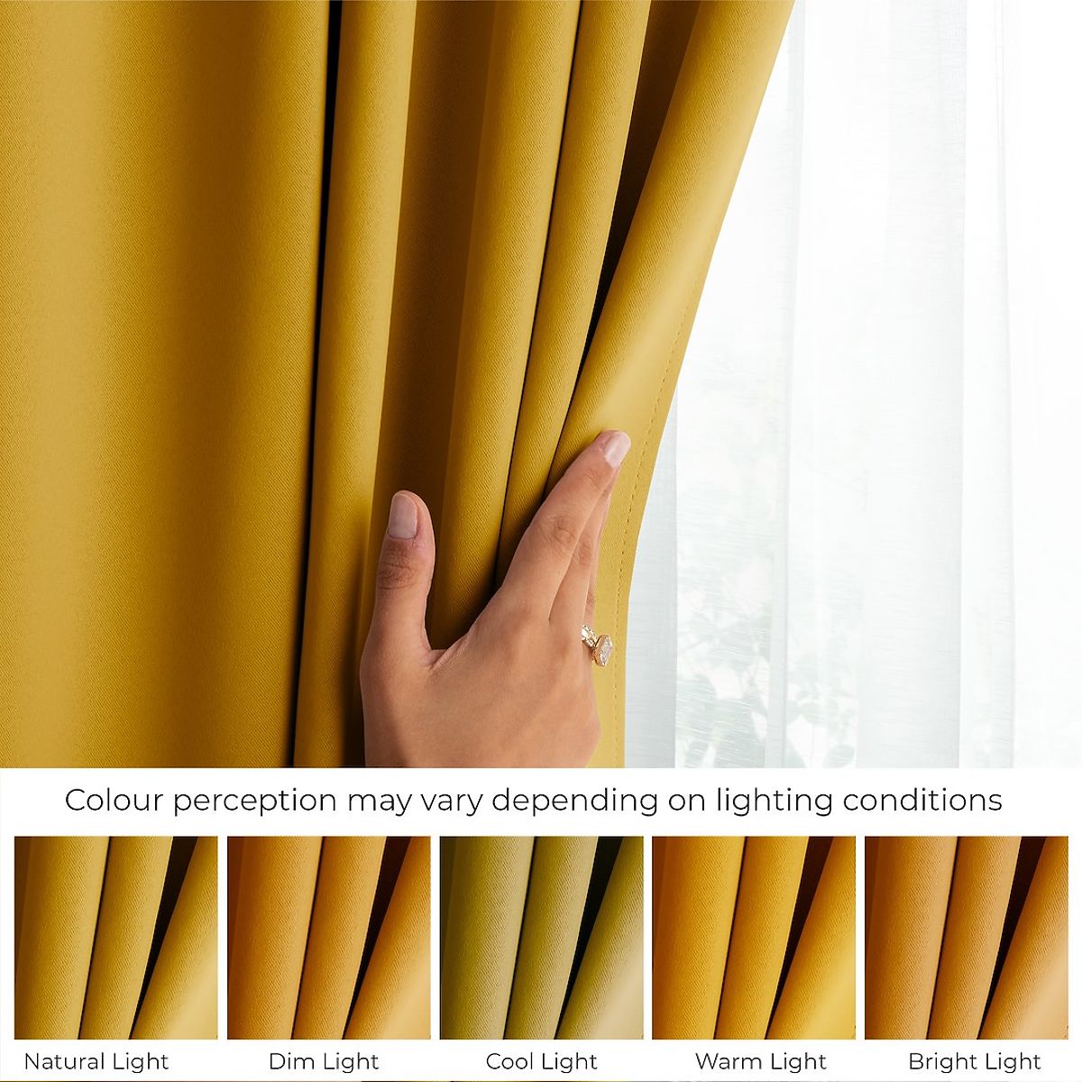 Mustard blackout curtain with silver eyelets, 140x245 cm, 90% light blocking. .. more