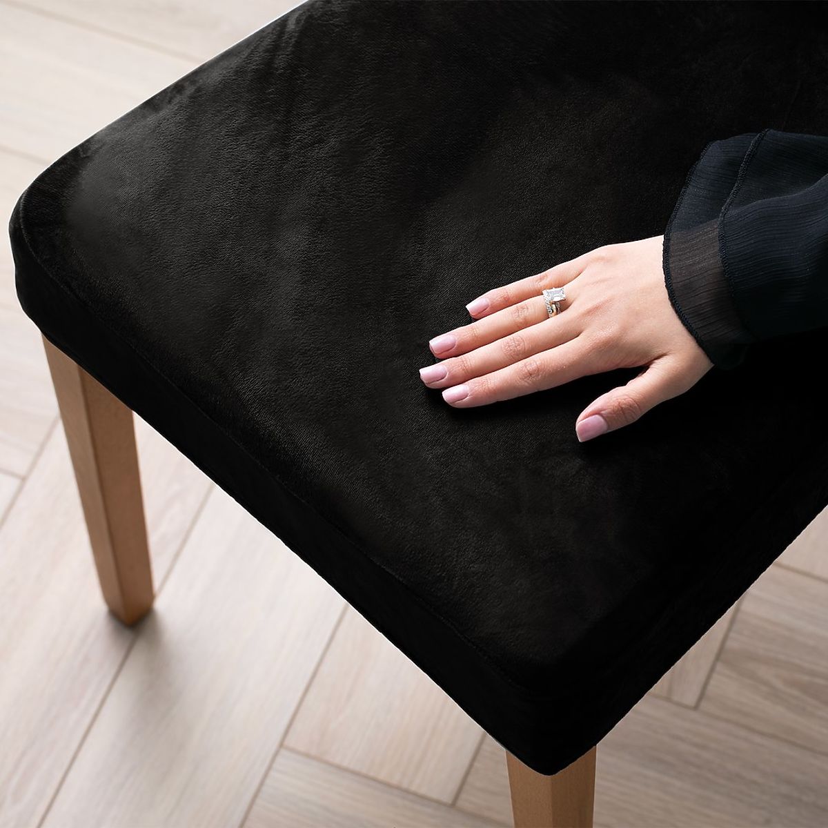 Black velour sofa cover in classic style with elastic band. .. more