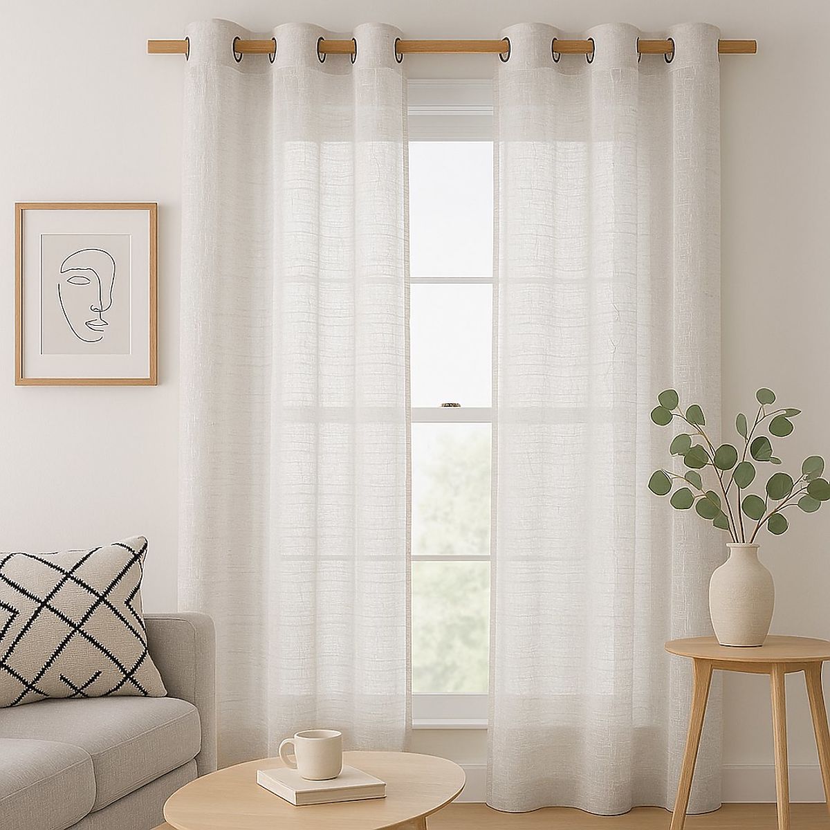 Beige curtain with silver eyelets, made of linen and microfiber, 140x250 cm. .. more