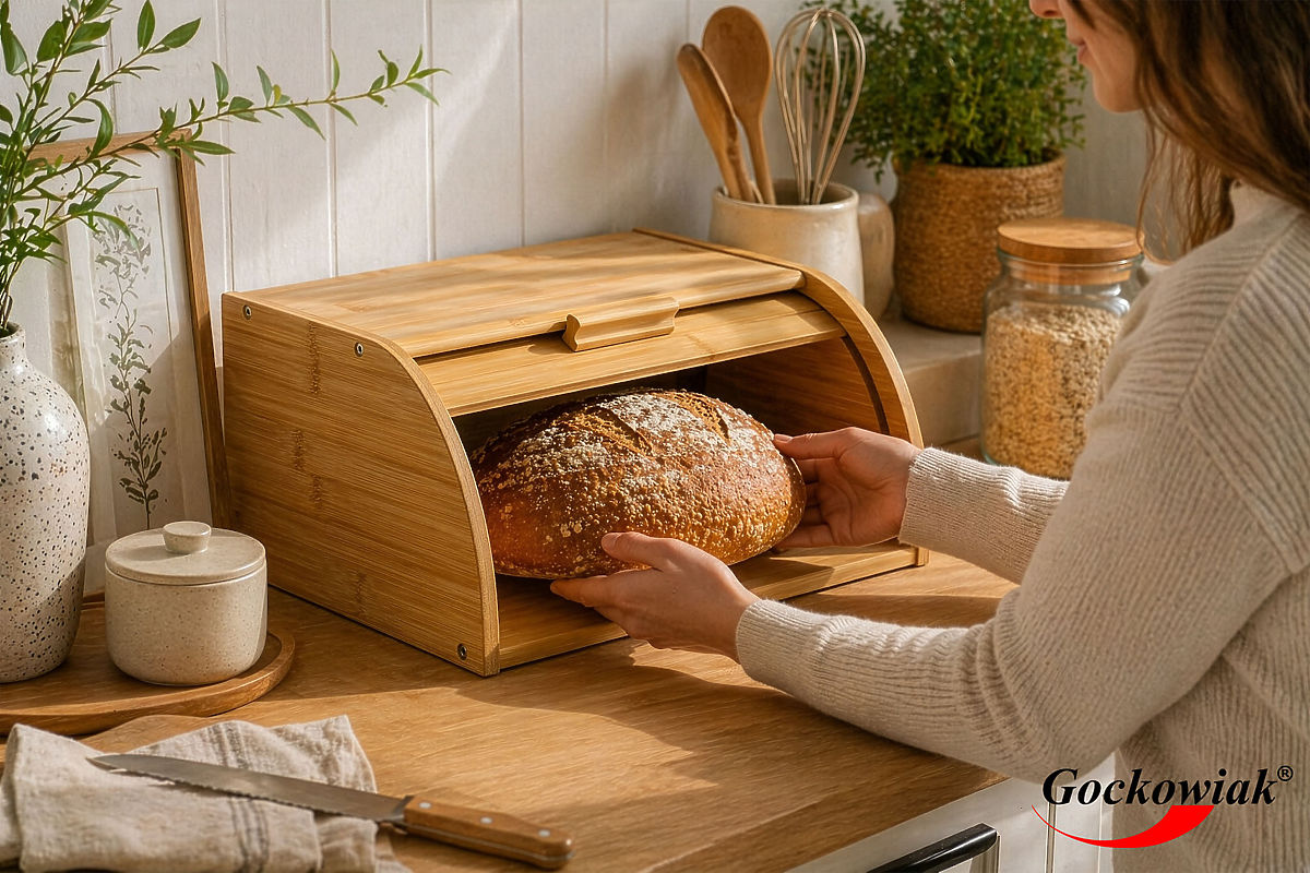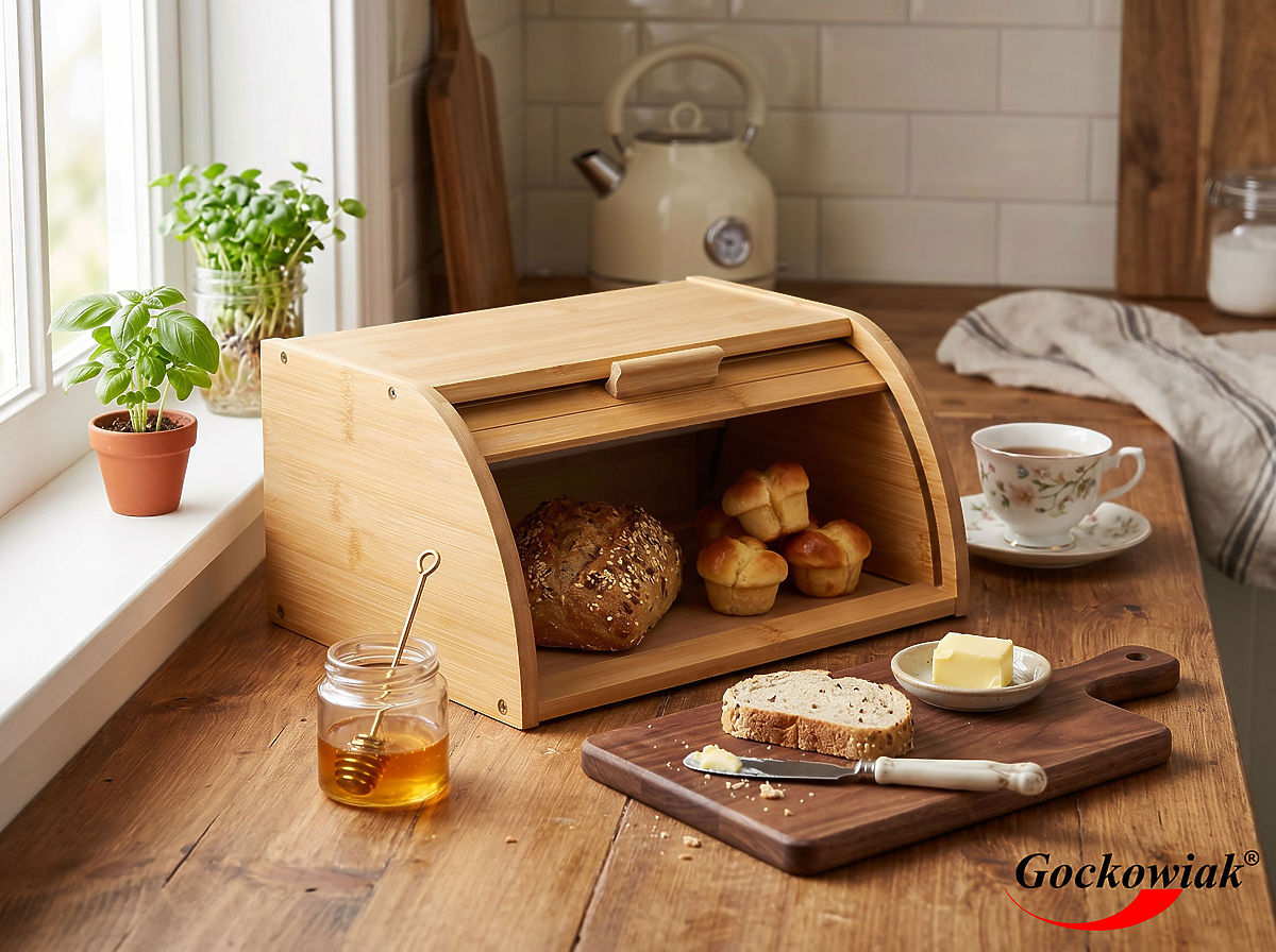 Bamboo Bread Box GRANO Model: GRANO | Material: Bamboo | Color: Natural ⭐️Made from bamboo ⭐️Sliding doors ⭐️Natural color ⭐️Universal design ⭐️Purchase from the manufacturer ✍️Specifications: Material: bamboo Closure: sliding Weight: 1.5 kg ✍️ Dimensions: Width: 35 cm Depth: 25 cm Height: 16 cm Additional Information The colors shown are approximate - they may differ from actual colors due to different monitor settings and photo editing processes. Actual dimensions may vary from those listed above. Error tolerance may be +/- 5%. Brand: Gockowiak EAN Product Code: 5902340332726 Color: natural Height: 16 cm Width: 35 cm Depth: 22 cm
