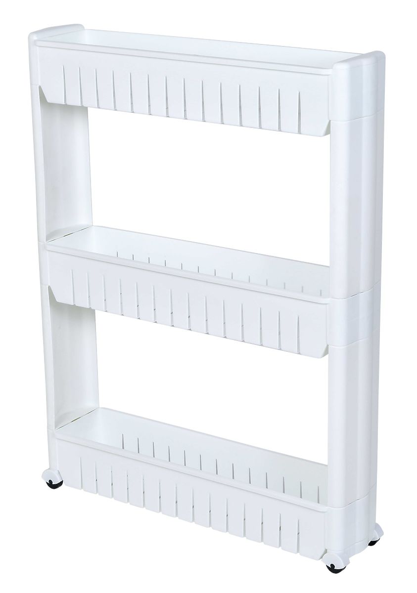 A mobile cabinet ideal for narrow spaces, such as the kitchen or bathroom. Its modular design made of durable plastic allows for easy customization to your needs – shelves can be added or removed. Thanks to its compact dimensions, it fits perfectly between a cabinet and a refrigerator, a washing machine, or other hard-to-reach places. The kitchen rack is perfect for storing spices, kitchen accessories, cosmetics, cleaning supplies, and many other essentials. Mobility is ensured by four wheels, making the bathroom cabinet on wheels easy to move wherever needed.