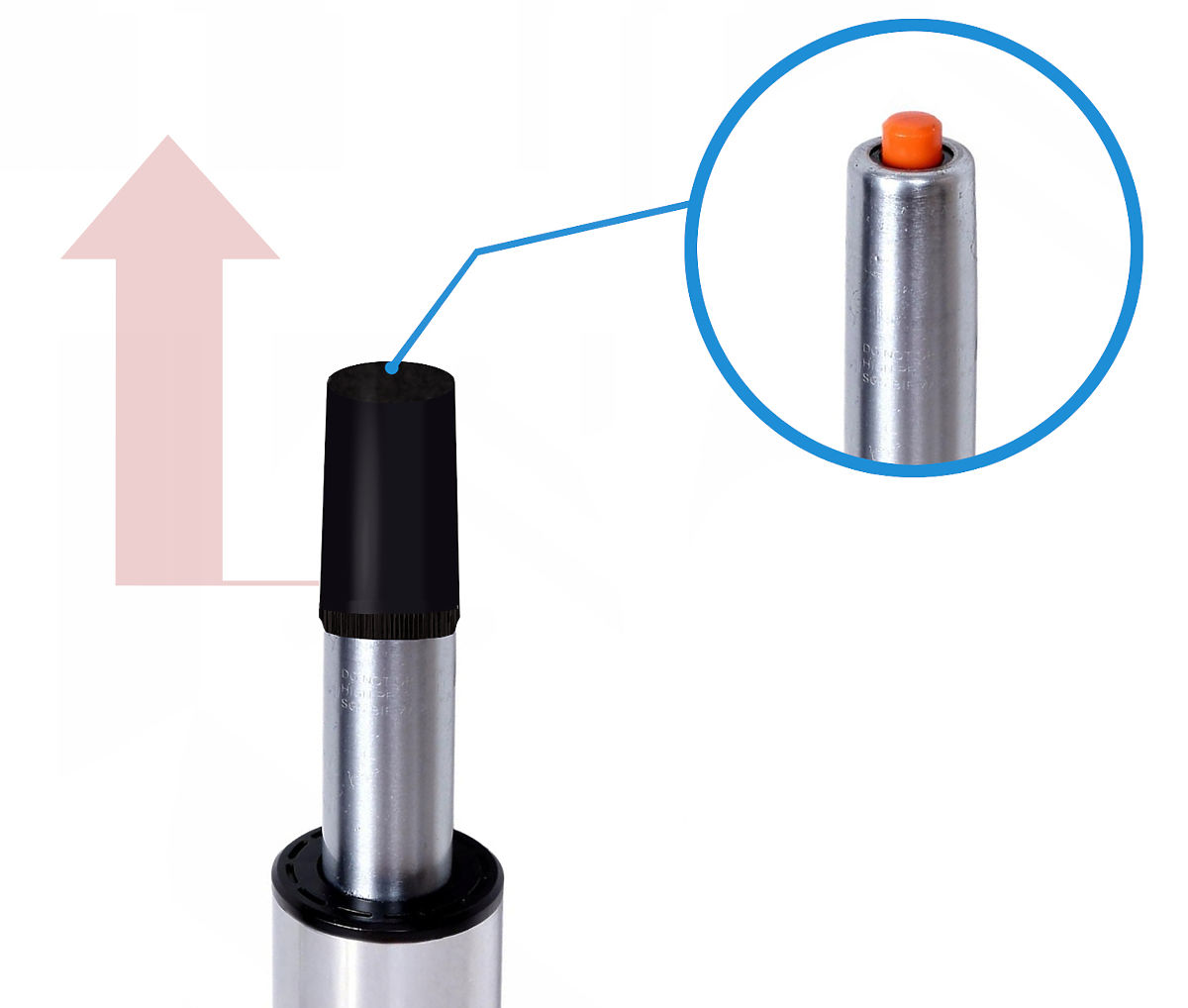 WARNING | There is a safety lock (black cap) on the piston that must be removed before attaching the seat.