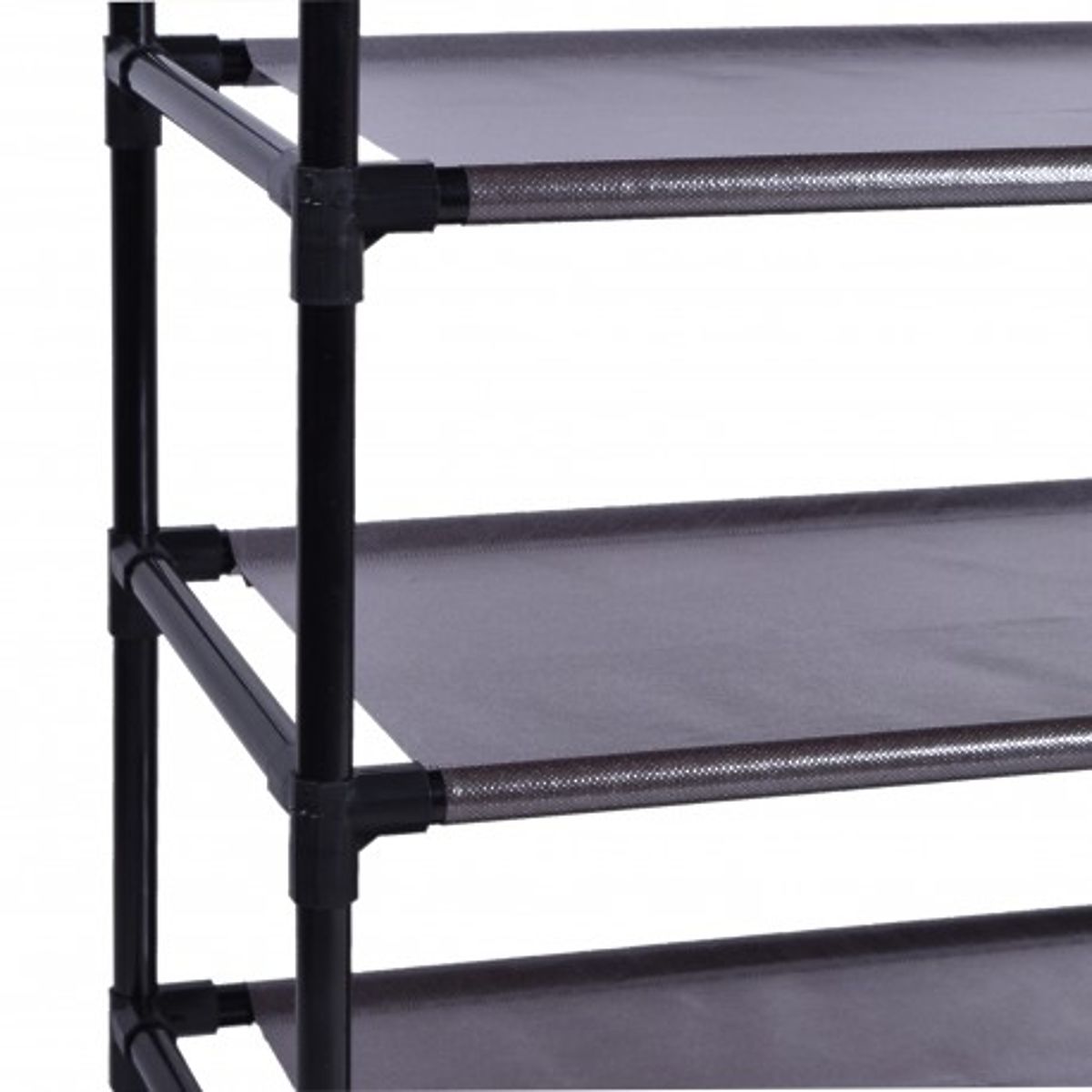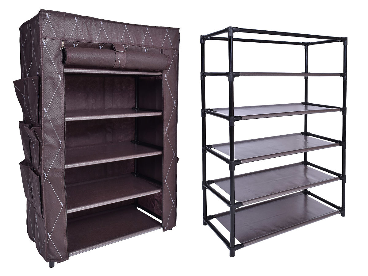 A shelf, shoe rack made of steel frames forming its structure. The frame is covered with a breathable quality material with a print. It is easy to maintain and practical, ideal for storing hats, scarves, gloves, shoes, or other small items. Lightweight and sturdy construction that you can fold, transport, or relocate at any time.